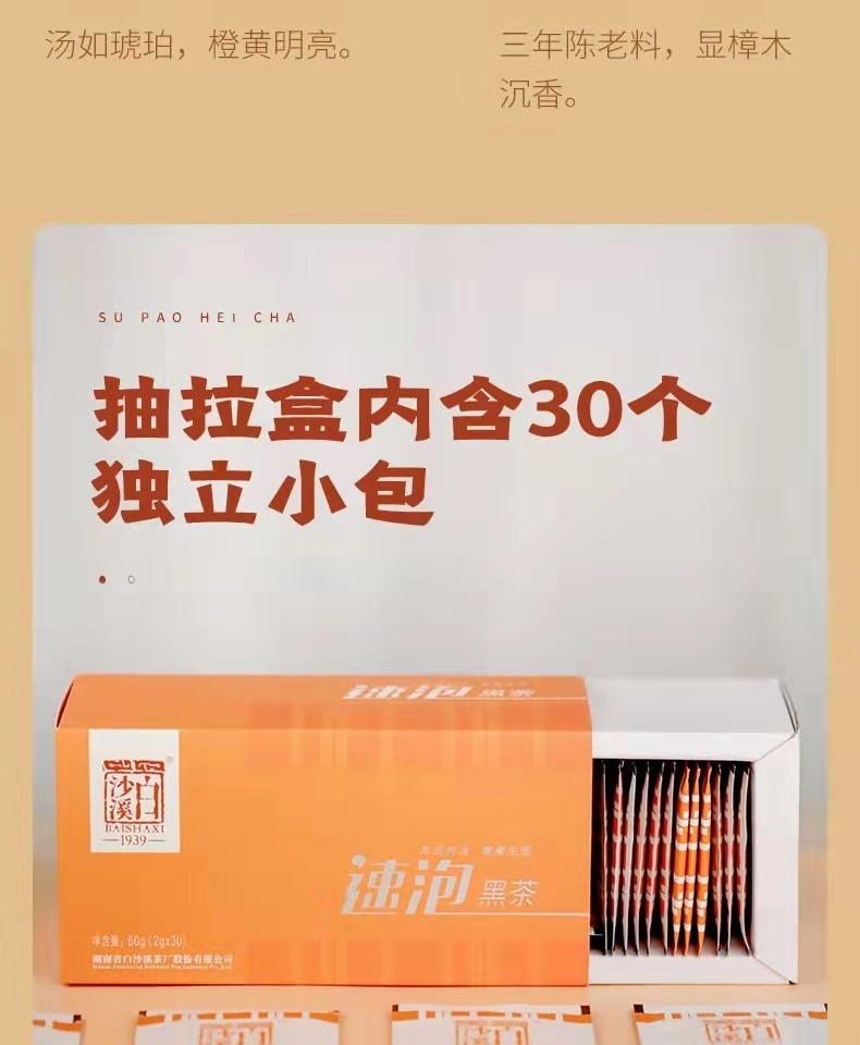 湖南安化黑茶正宗白沙溪速泡黑茶袋泡小包裝茶60g