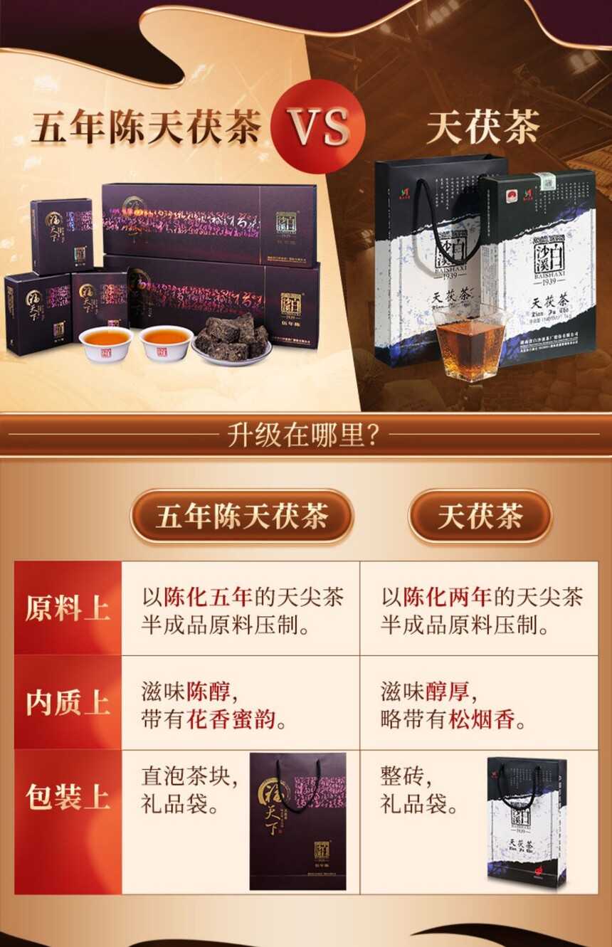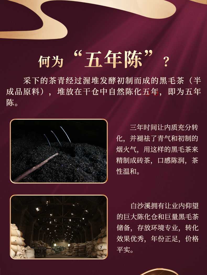 湖南正宗安化黑茶白沙溪五年陳福天下直泡320g盒