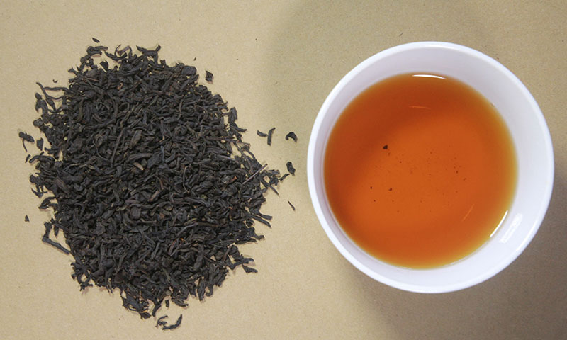 正山小種紅茶:條索緊實(shí)勻齊,色澤烏潤(rùn),湯色紅亮,有濃郁的松煙香,滋味醇厚。